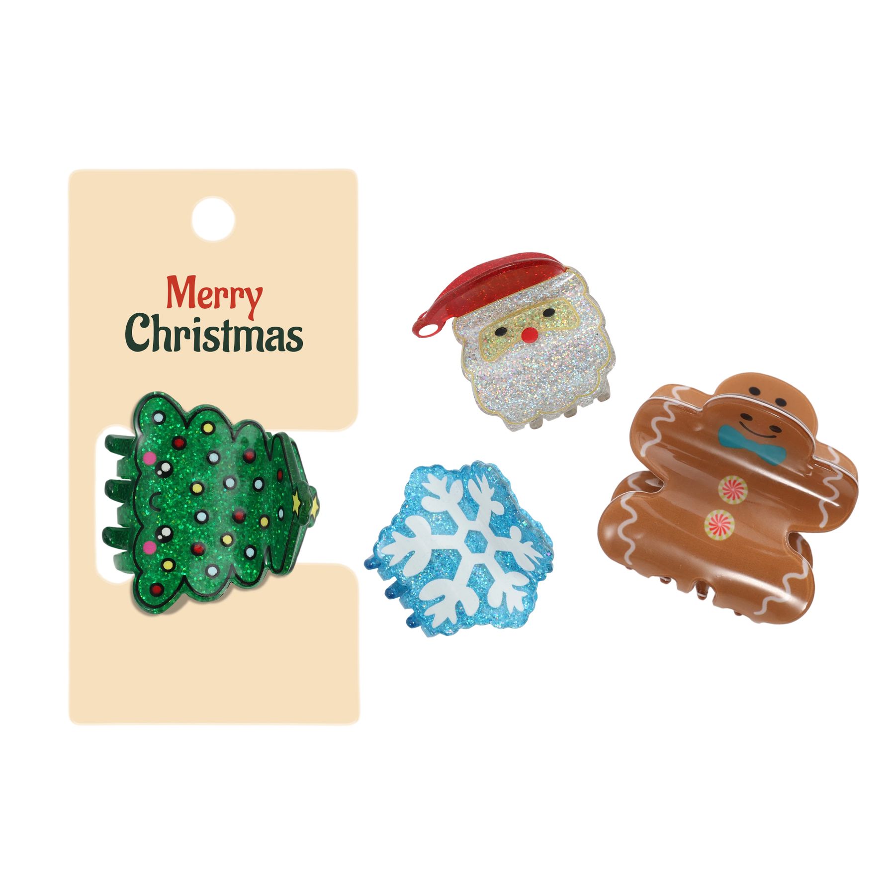 Add Christmas festive style with our Christmas Hair Claws, crafted from durable PVC material. Our claw features Snowflake, Santa Claus, Christmas Tree and Gingerbread Man styles with a hang card, which styles can be chosen at will. Customise the card with your logos or brand messages through digital printing. Perfect for retail sales, Christmas parties, or promotional gifts, our hair claw showcases your brand through Christmas cheer with practical use.